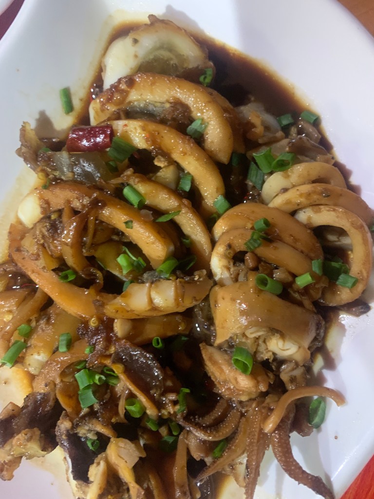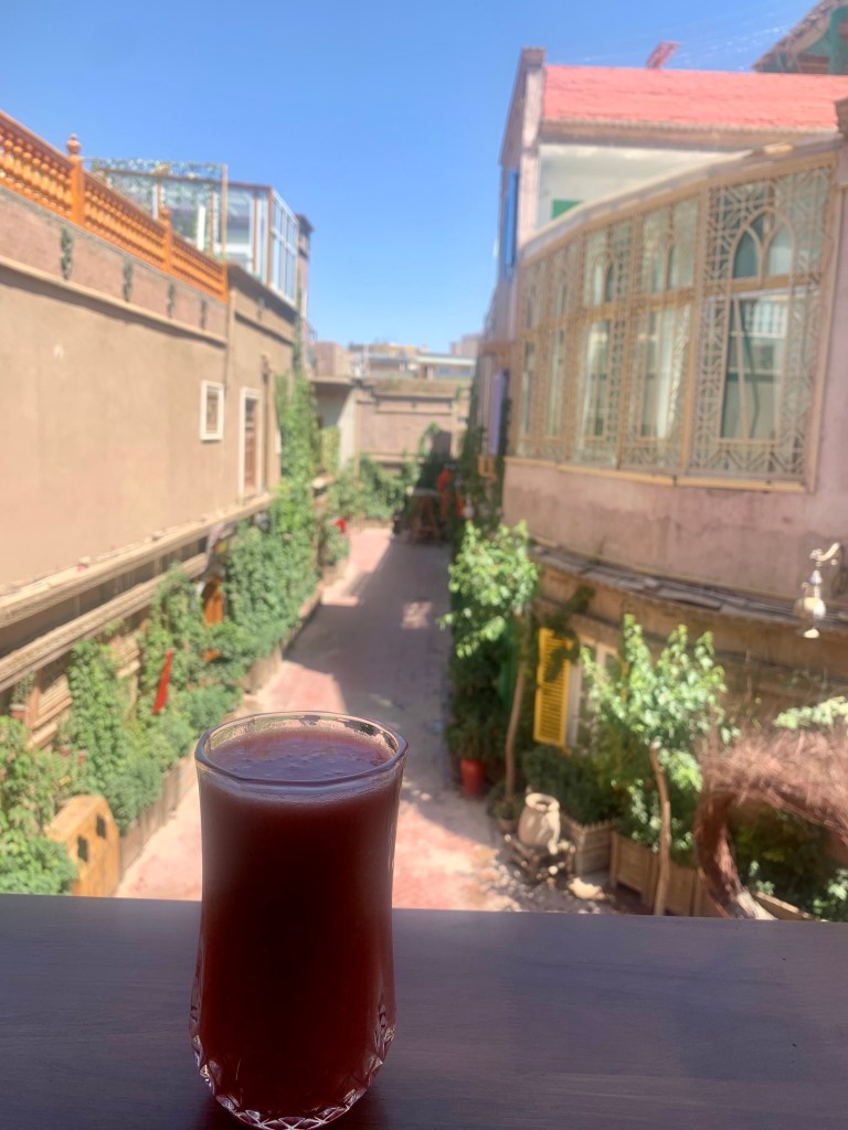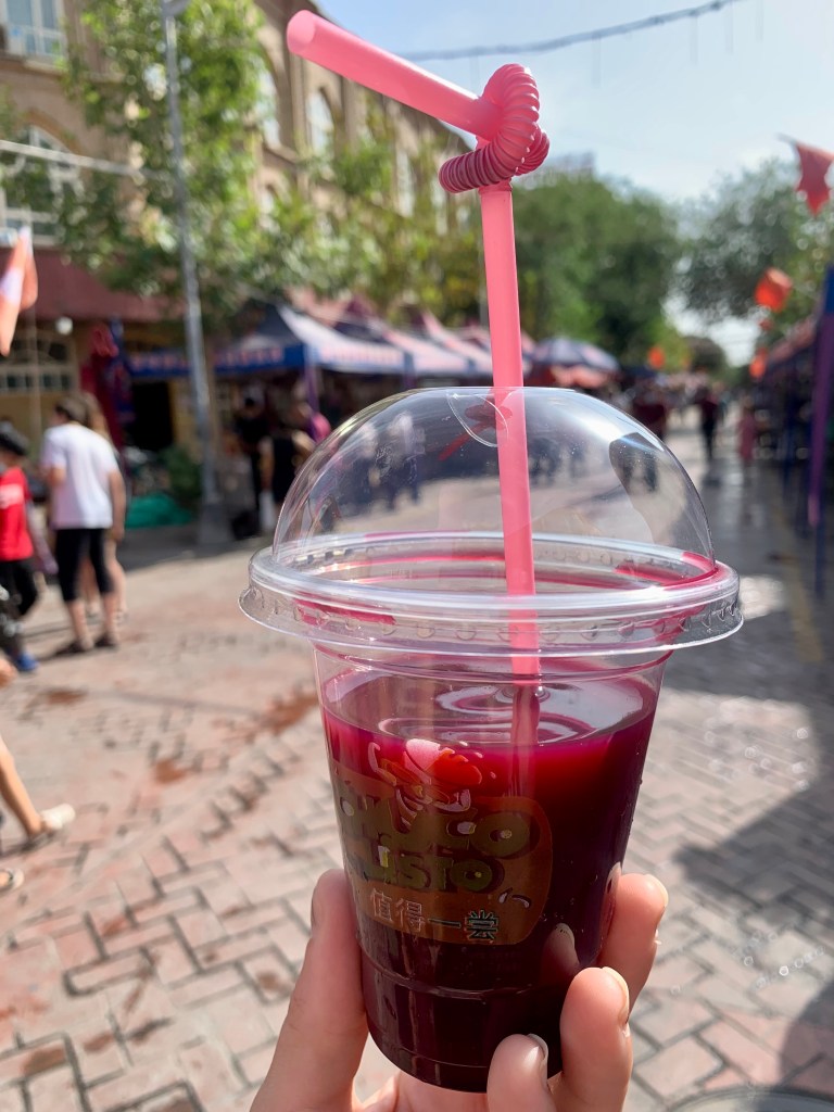 As we walked through the village, we were able to learn a lot about the culture just by observing. We passed a courtyard where an animal hide was being dried in the sun so it could be cleaned and stretched into a traditional drum. We also passed a small shop selling various flavors of 白酒 baijiu, which translates into “white liquor” and is a very strong, fermented, distilled sipper that is popular throughout China. Now, I’ve had baijiu before, it’s not something I’m particularly partial towards, but one of these jugs of baijiu caught our eye due to its flavor… bee! That’s right, floating around infusing the liquor were a bunch of bees! Well, you know what they say: when in China, drink as the Chinese drink… (It wasn’t that bad. Michael did say he thought it tasted like rat poison, but, honestly, that’s kind of just regular baijiu. You get used to it.)